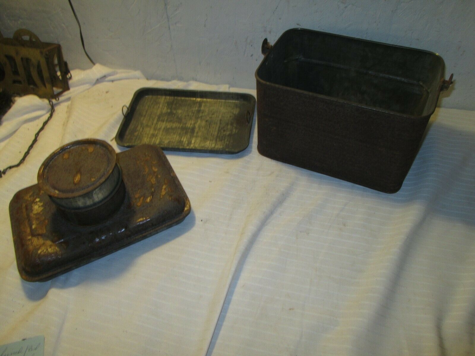 Title (ebay affiliate link): Vintage Metal Tin Bucket Lunch Pail with Bale Handle with tray and thermos