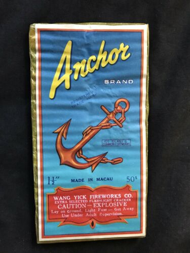 Anchor Firecracker Label - 1 1/2 50s - Wang Tick - Macau