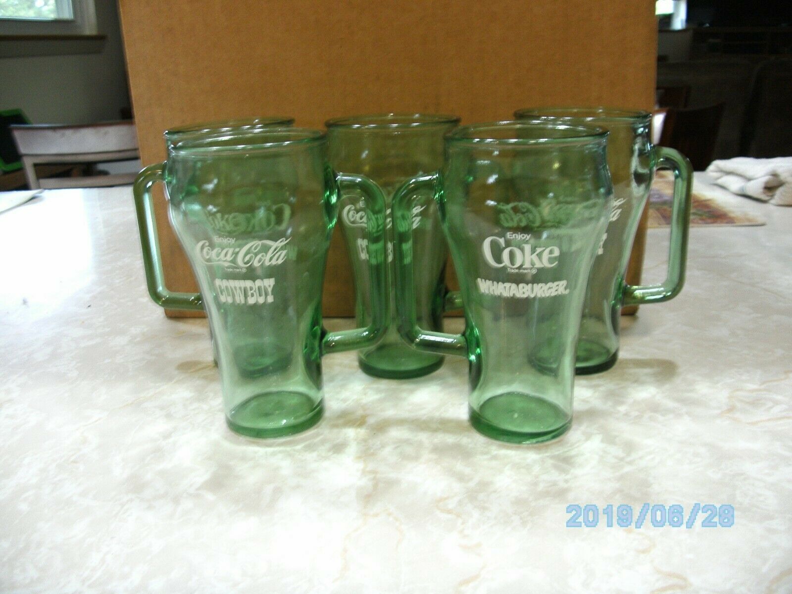 Title (ebay affiliate link): COCA COLA GREEN "COWBOY WHATABURGER" GLASS MUGS GLASSES SET OF 5
