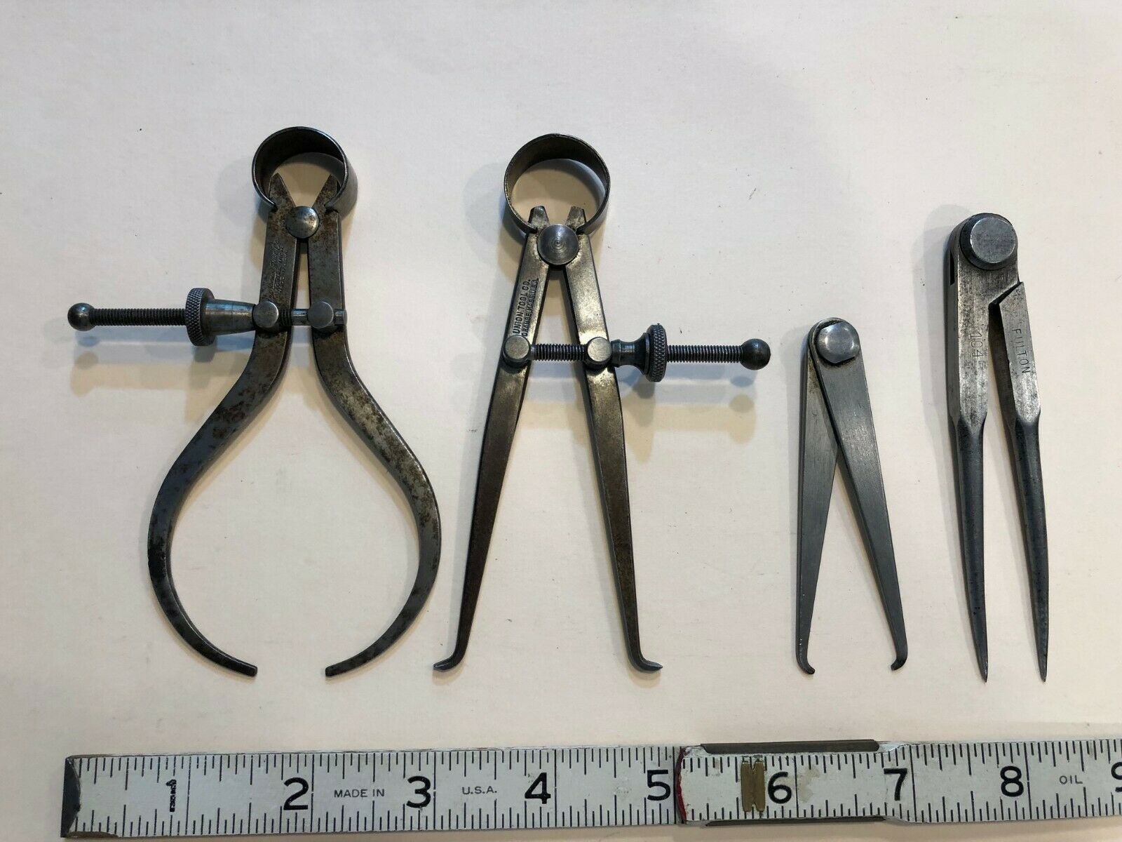 lot of 4 vintage small calipers & dividers - Lufkin USA/Union USA/Fulton Germany