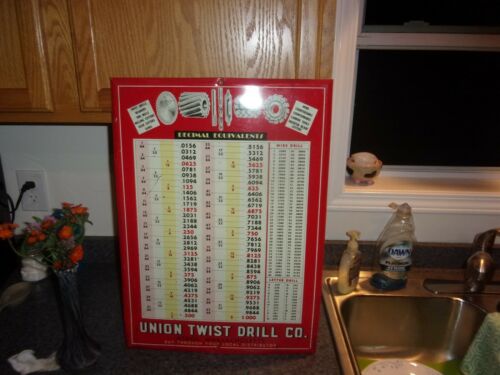 Vintage Union Twist Drill Co Athol Massachusetts Decimal Equivalent Metal Sign