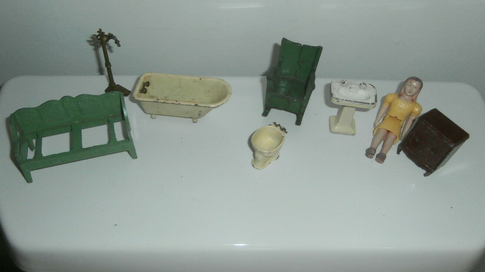 Vintage Cast iron metal doll house furniture 8 pieces Verrry old