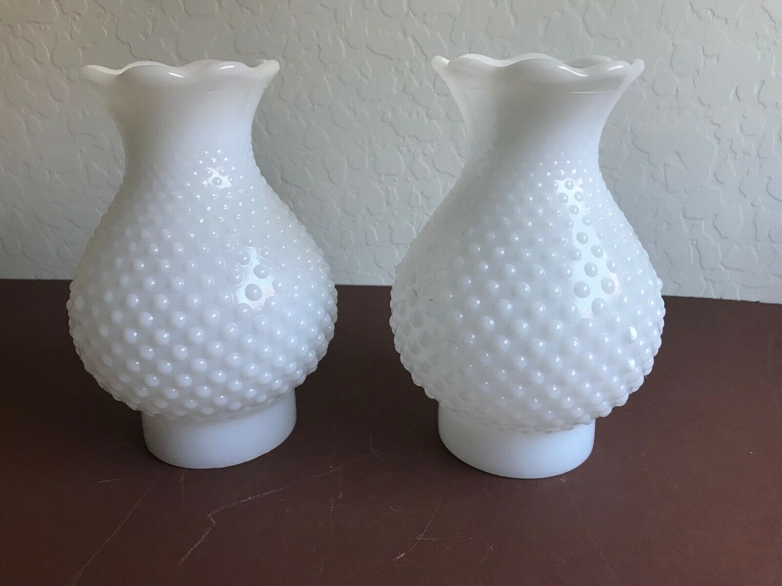 VINTAGE MILK GLASS HOBNAIL GLOBE SHADE CHIMNEY REPLACEMENT WHITE 7" PAIR