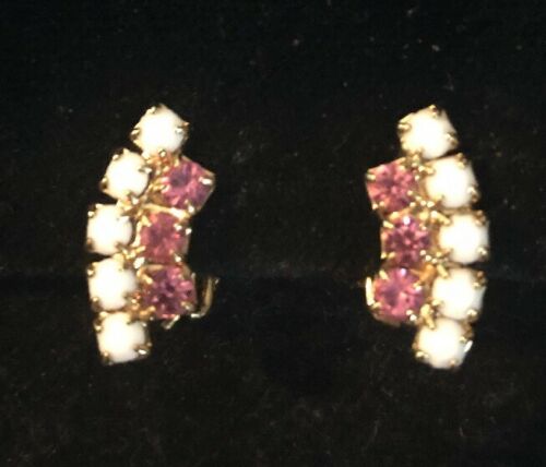 Title (ebay affiliate link): VINTAGE MILK GLASS & PINK RHINESTONE CLIP-ON EARRINGS SKU107413P