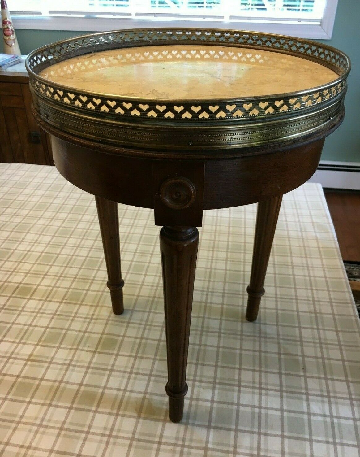 Title (ebay affiliate link): Antique / Vintage Round Marble Top Brass Gallery Wood Side / End Accent Table