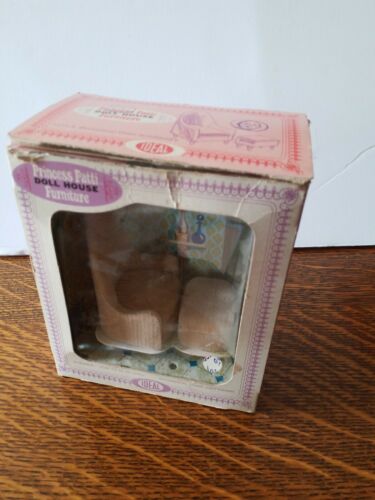 Title (ebay affiliate link): VINTAGE DOLLHOUSE FURNITURE IDEAL PRINCESS PATTI BEIGE CHAIR & OTTOMAN W/BOX