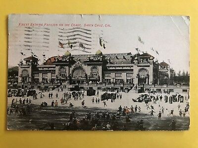 FINEST BATHING PAVILION ON THE COAST SANTA CRUZ CAL POSTCARD USA 1908 POSTMARK