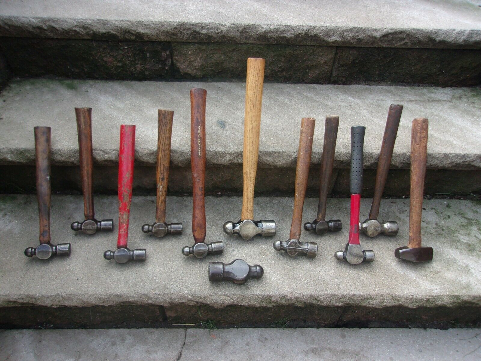 Title (ebay affiliate link): 11 VINTAGE BLACKSMITH / BALL PEEN HAMMERS AND 1 HEAD