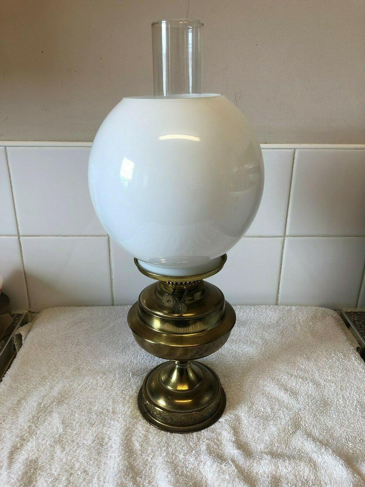 oil lamp brass. 18" tall.