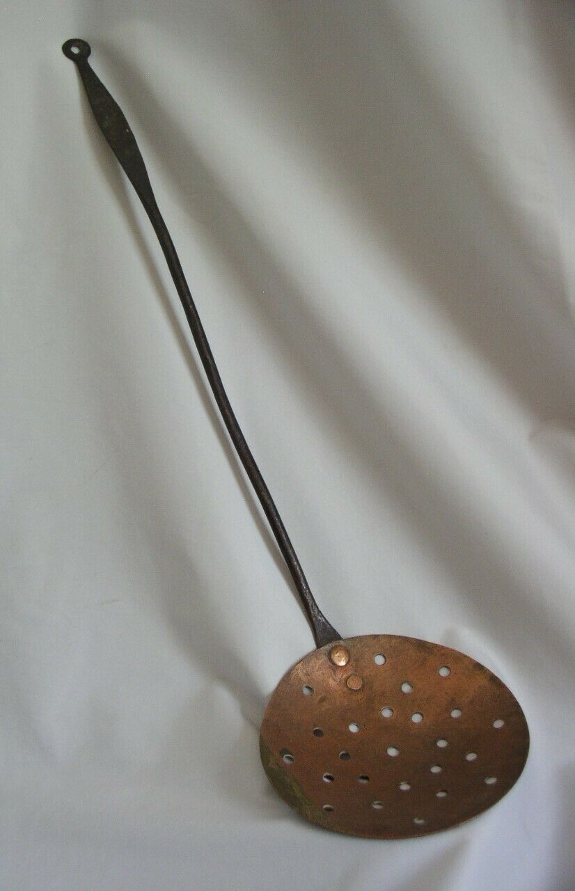 Title (ebay affiliate link): WROUGHT IRON & COPPER SKIMMER ~ 19th C. ~ HAND FORGED IRON & COPPER PRIMITIVE