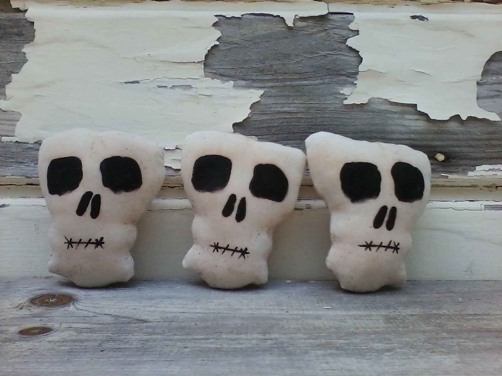 Primitive Halloween Grungy Skull Ornies Bowl Fillers Decor Set Of 3