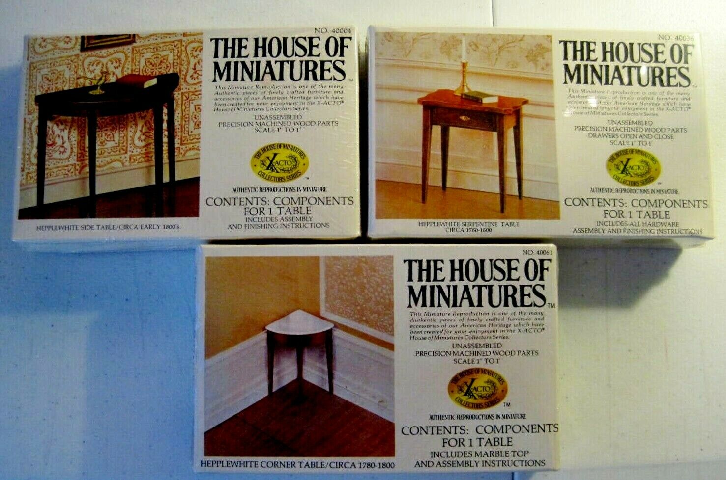 LOT DOLL HOUSE OF MINIATURES 3 HEPPLEWHITE FURNITURE KITS, ANTIQUE REPLICAS