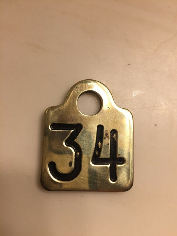 Vintage Number 34 Farm Cow Tag Antique Brass Metal Cattle Tag Keychain Fob