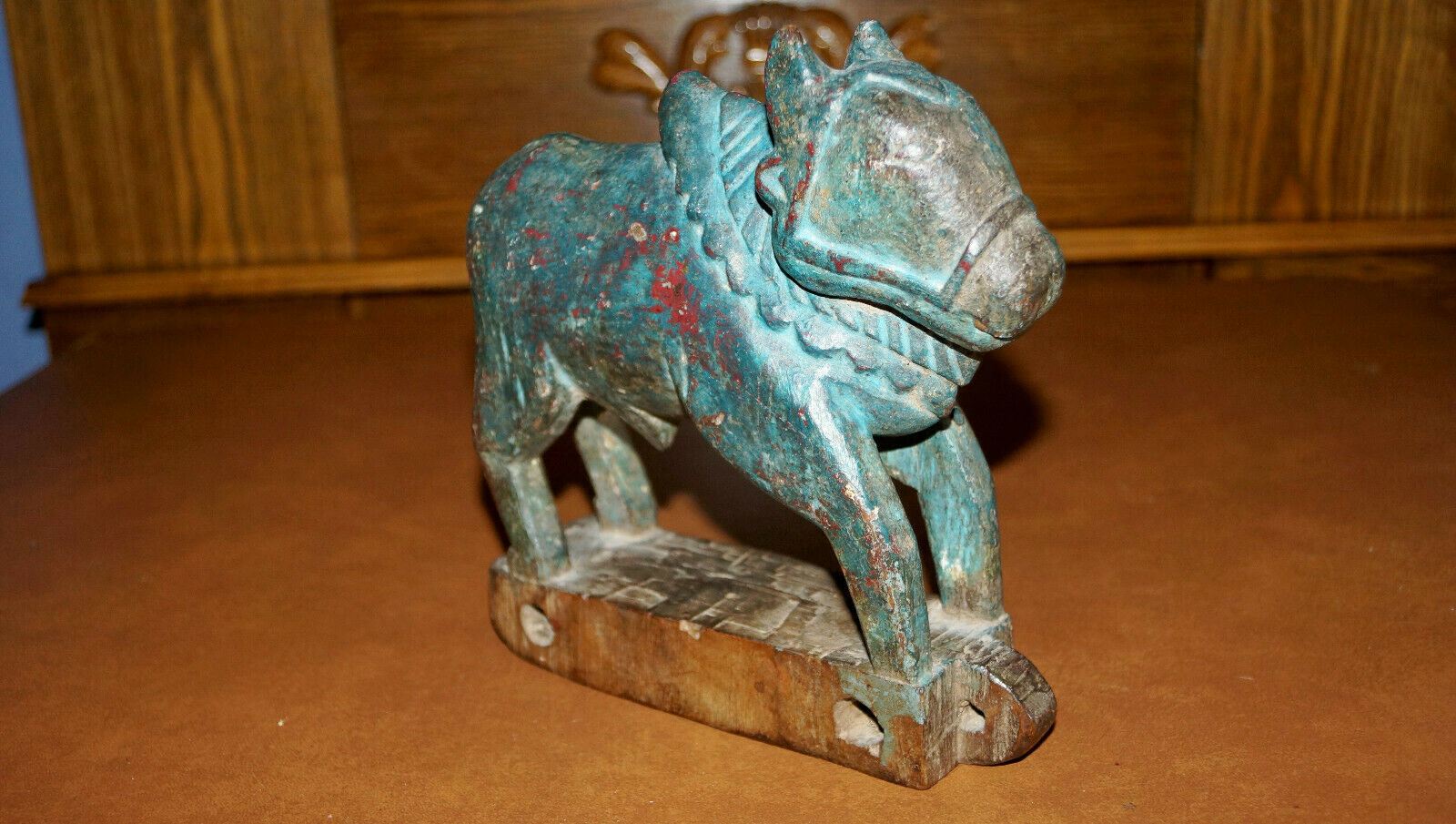 Title (ebay affiliate link): Antique Primitive Folk Art Wood Bull Hand Carved Painted Pull Toy8" Tall