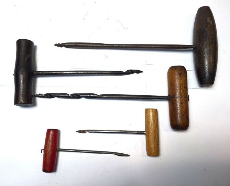 Title (ebay affiliate link): Vintage Wooden T Handle Wood Screw Starter Gimlet Hand Augers LOT of 5