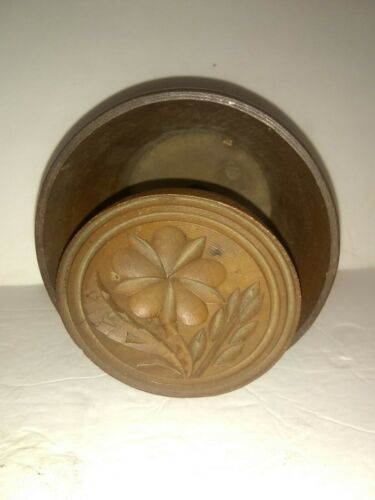 Antique Butter Stamp Press Mold Wood Farmhouse Primitive Wheat and Flower 4.5"