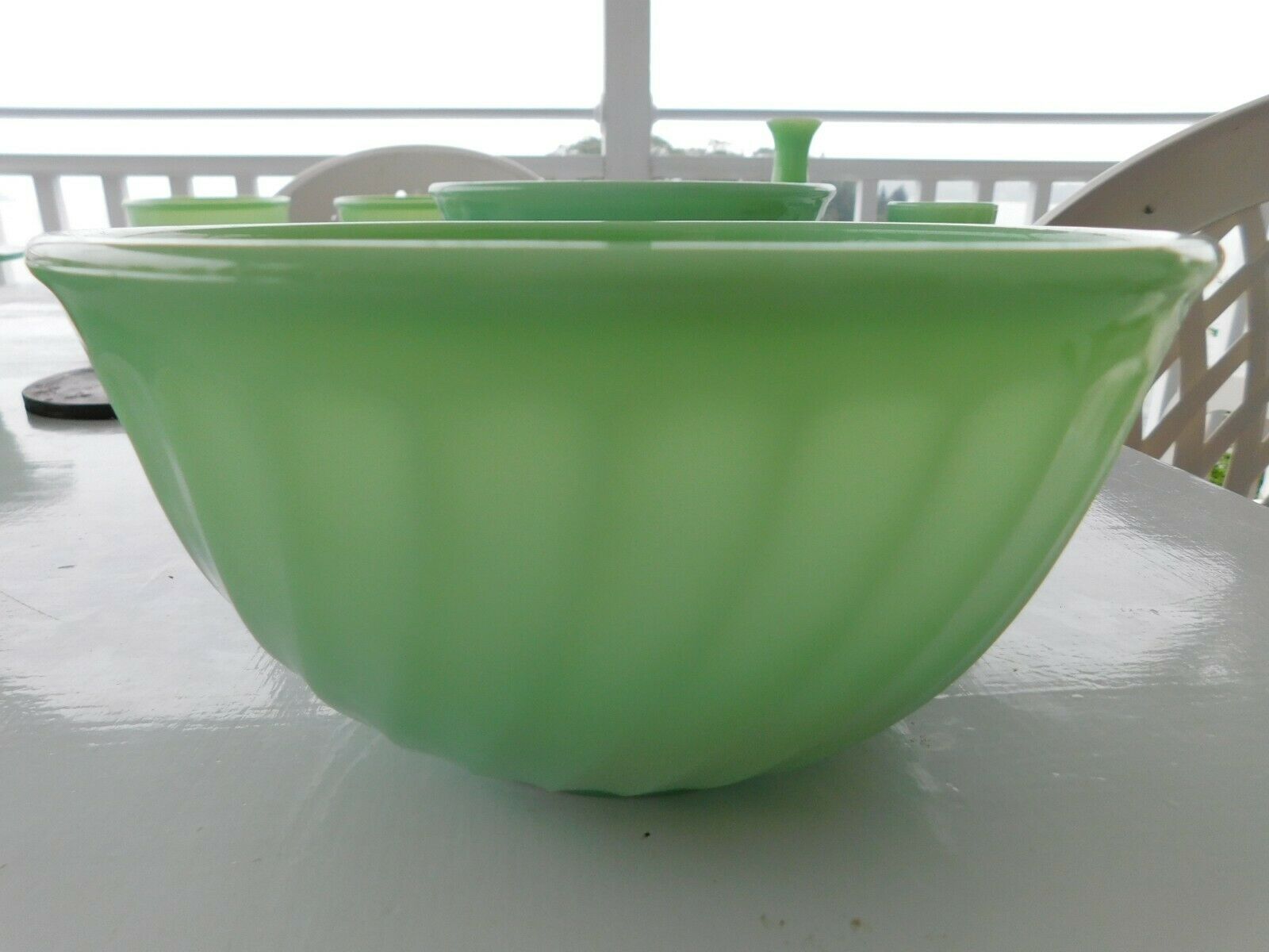 vintage Fire King green Jadeite Swirl Milk Glass 8" mixing bowl EXCELLENT