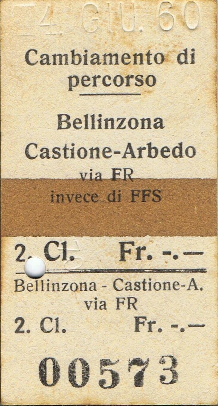 Railway tickets Switzerland Bellinzona change of route second class 1960
