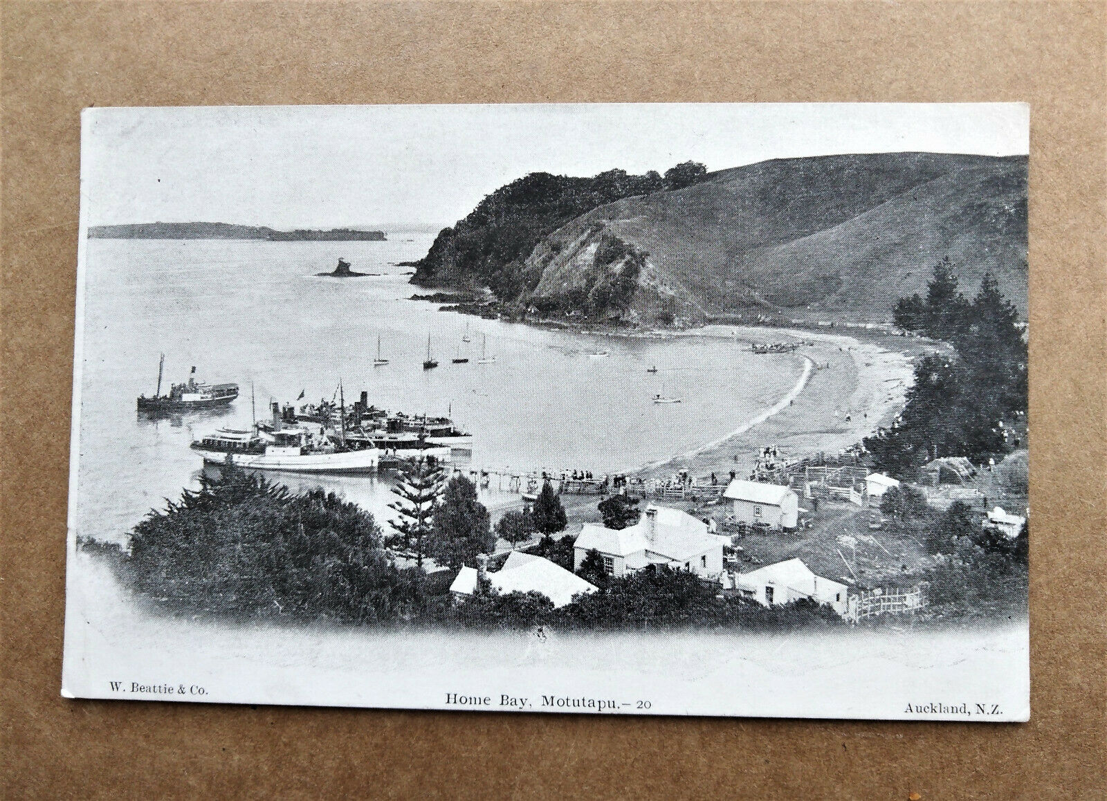 Title (ebay affiliate link): Home Bay, Motutapu Island, Auckland, New Zealand Old Postcard