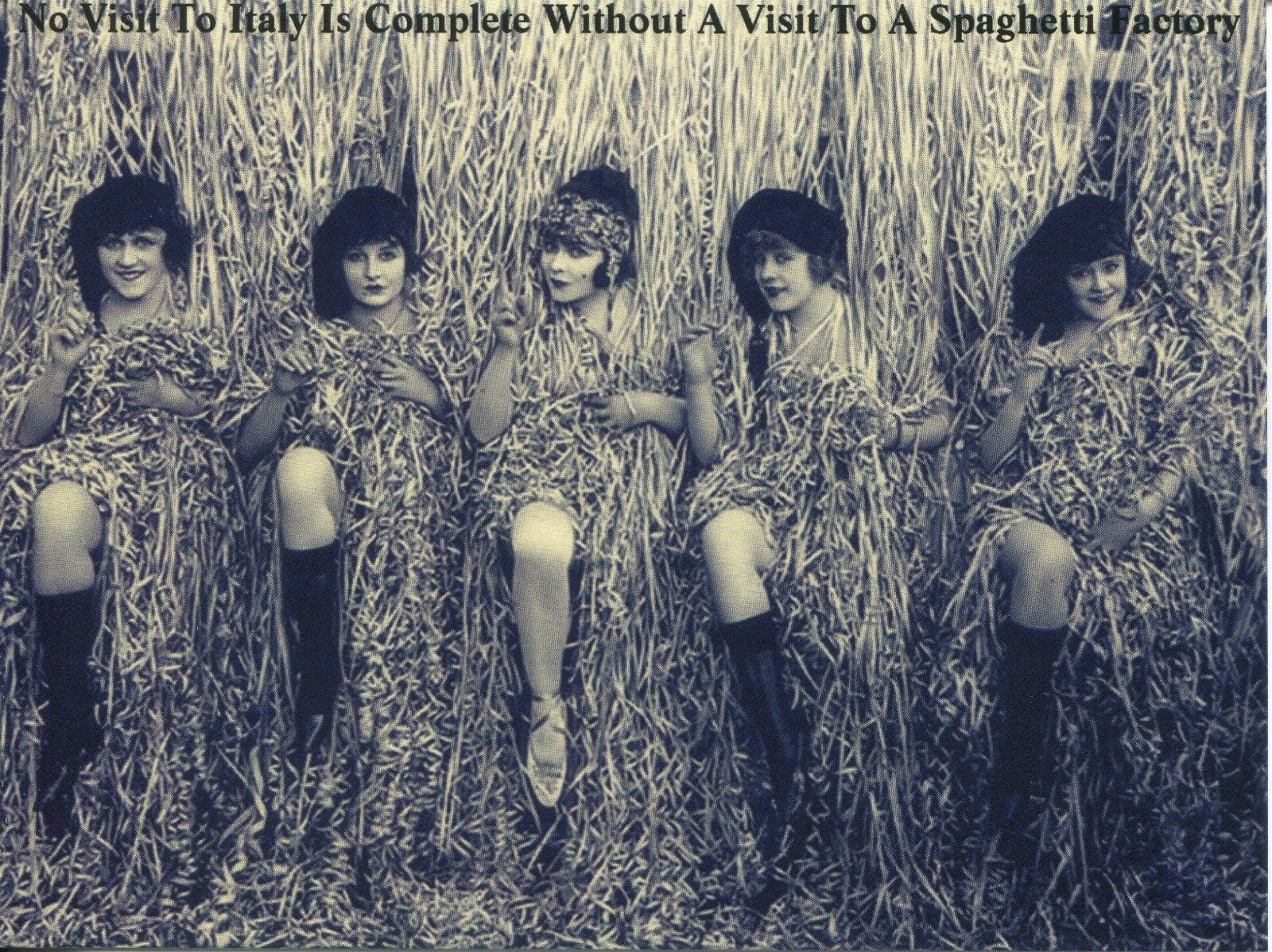 POST CARD OF A VINTAGE TRAVEL POSTER FOR SPAGETTI FACTORY IN ITALY
