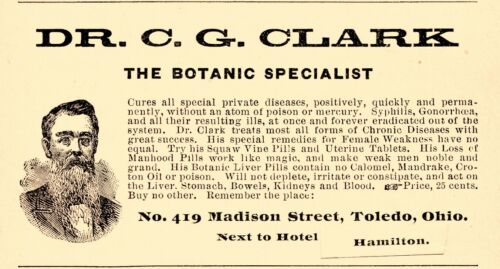 Title (ebay affiliate link): 1902 DR. C. G. CLARK BOTANIC SPECIALIST, TOLEDO, OHIO CURE-ALL ADVERTISEMENT