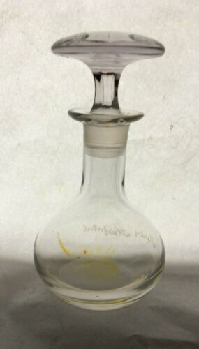 VTG APOTHECARY BOTTLE WITH STOPPER MERCY HOSPITAL ETCHED ON SIDE 4" x 2" CLEAR