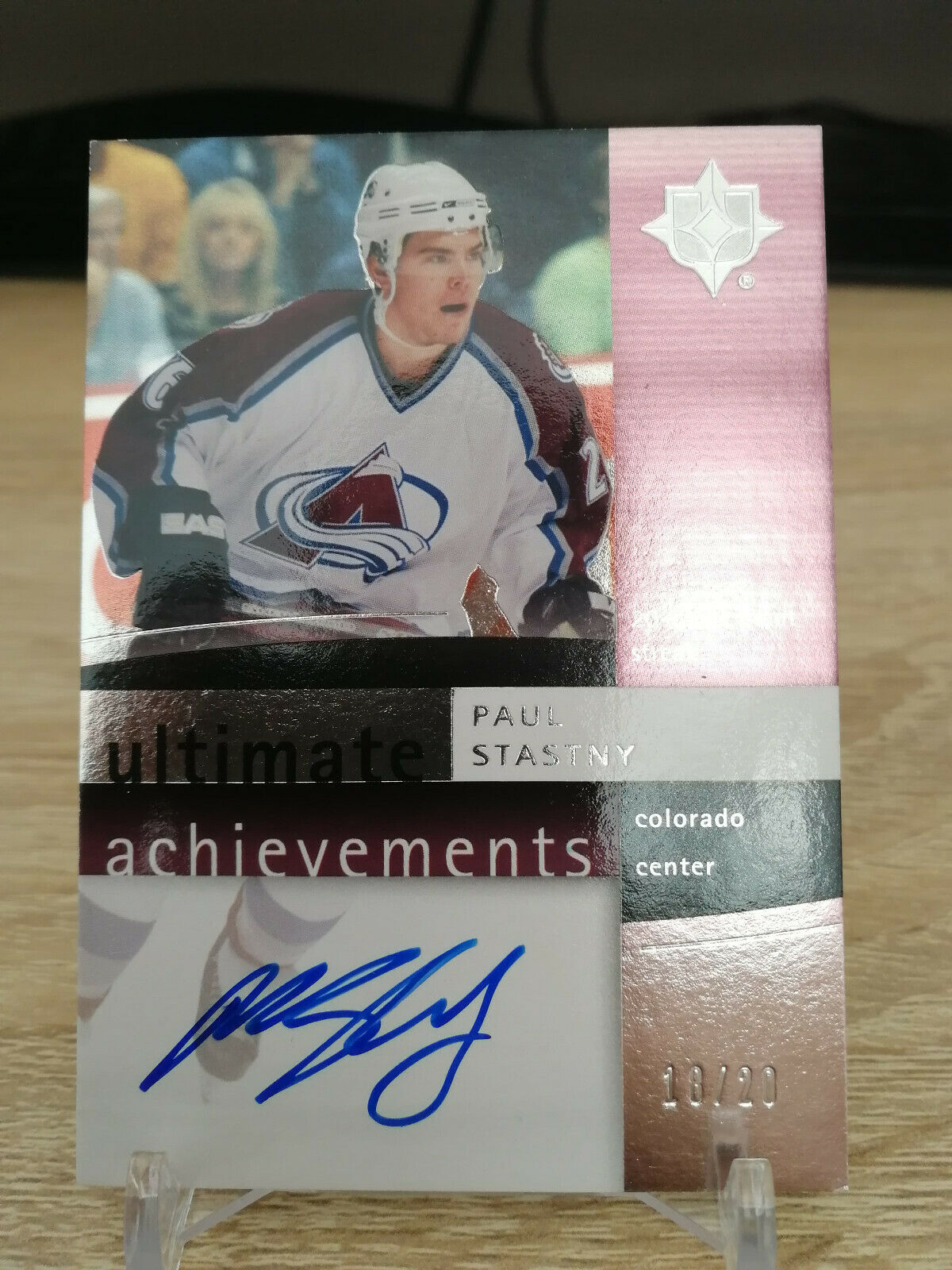 Title (ebay affiliate link): 2007-08 UD Ultimate Achievements Paul Stastny /20 SIGN Colorado Avalanche