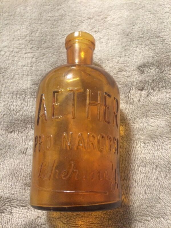 Title (ebay affiliate link): ANTIQUE AETHER PRO NARCOSI EMBOSSED MEDICAL BOTTLE NEAR MINT! HONEY COLOR