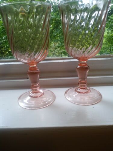 Title (ebay affiliate link): 2 heavy Vintage Pink Depression Glasses Large Wine Glass Marked France
