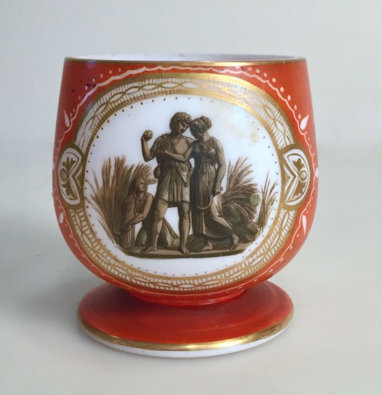 Antique Victorian Bristol Opalene Portrait Glass Cup Mug Vase Greek Roman Women