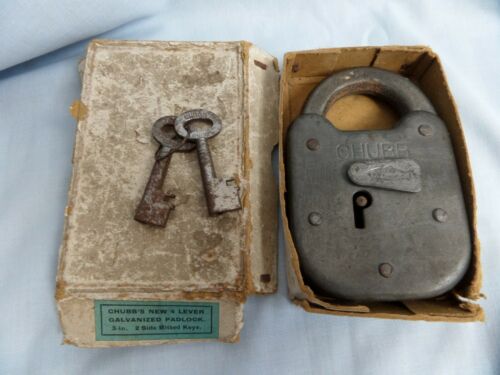 Title (ebay affiliate link): ANTIQUE BOXED 3 INCH 4 LEVER CHUBB PADLOCK & 2 SIDE BITTED KEYS WORKING