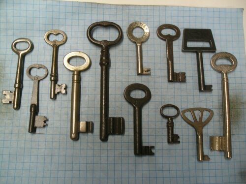 LOT OF 12 ANTIQUE SKELETON, FURNITURE, BARREL, CABINET AND OLD LOCK KEYS