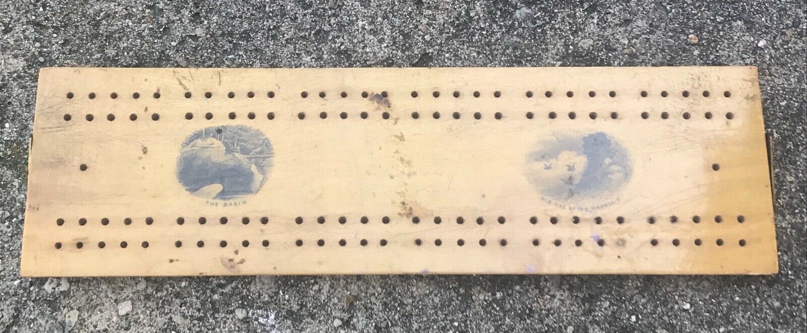 Title (ebay affiliate link): Antique Mauchline Ware Cribbage Board "The Basin" "Old Man in the Mountain"