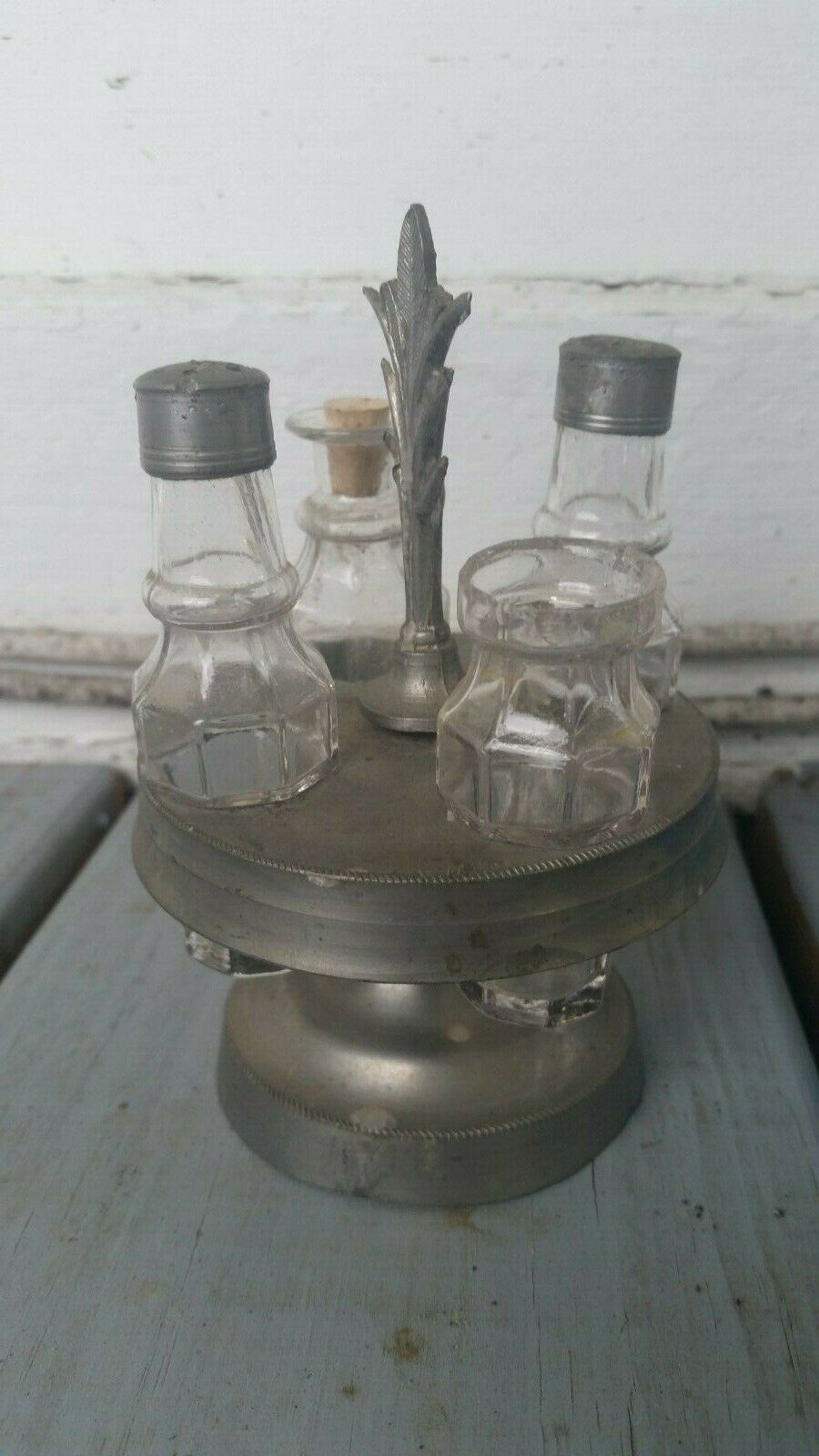 Title (ebay affiliate link): 19th century Sandwich Blown Molded Paneled toy Caster Bottles and Holder Child''s