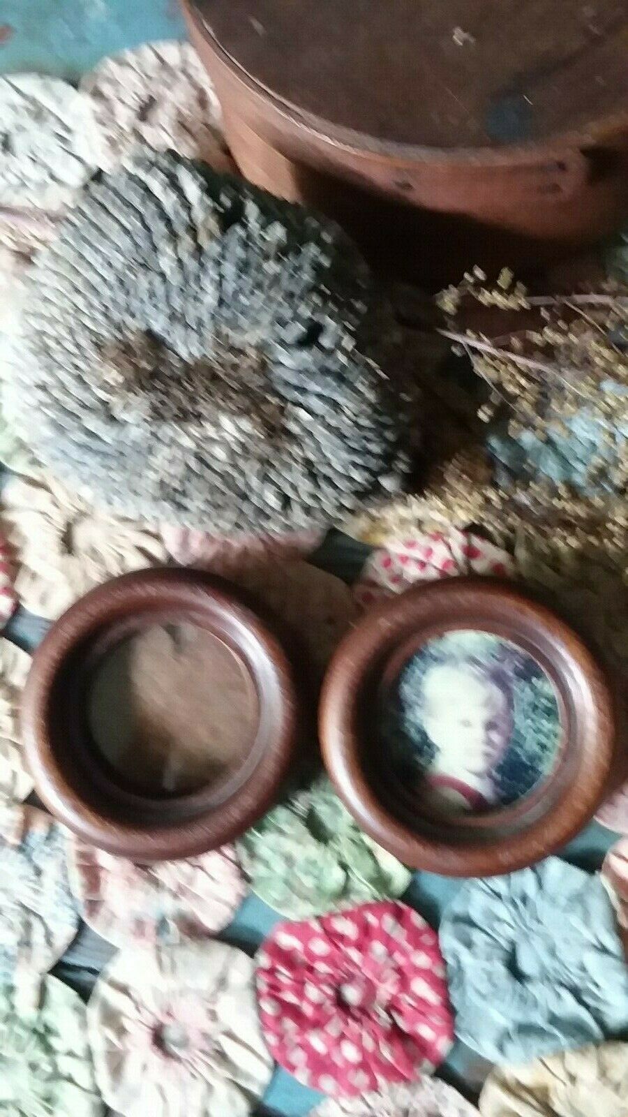 Title (ebay affiliate link): Early PRIMITIVE ANTIQUE small round Picture Frames