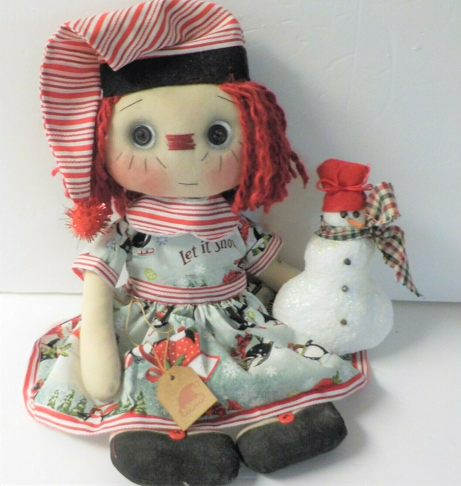 Title (ebay affiliate link): Primitive HM Raggedy Ann CHRISTMAS IN JULY BUTTON EYE DOLL "MARYANN" SNOWMAN