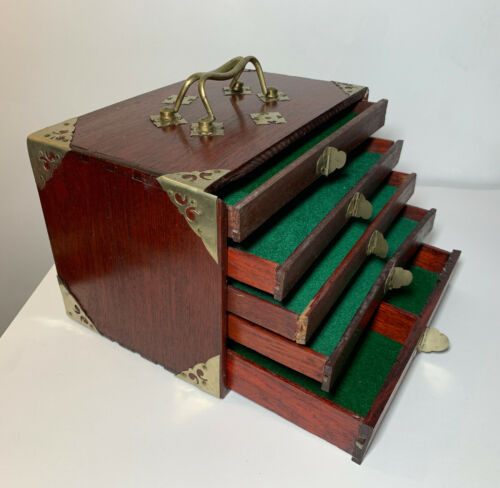 Title (ebay affiliate link): VTG ANTIQUE SMALL WOOD WATCHMAKER JEWELER 5 DRAWER STORAGE CABINET W/ DECORATIVE