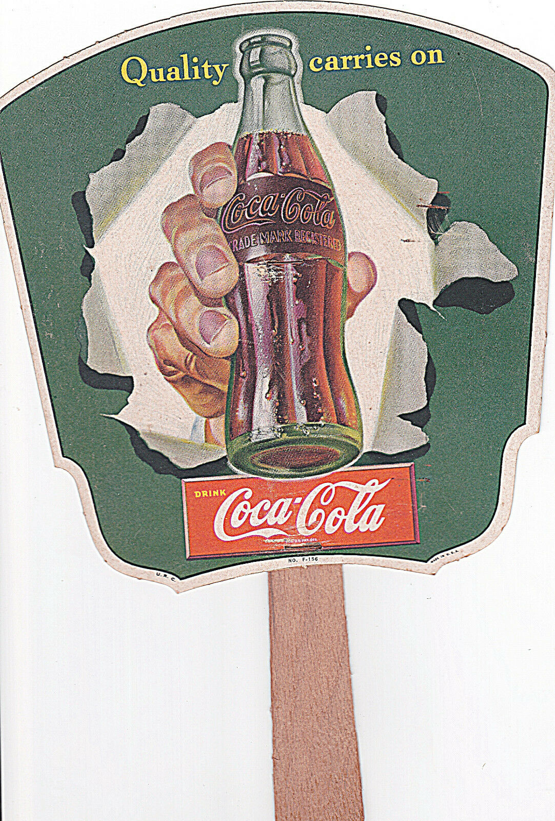 Vintage 1950''s COCA COLA Quality Carries On Cardboard Advertising Hand Held Fan