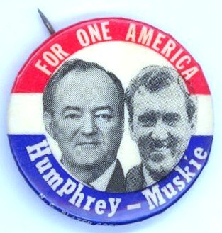 Title (ebay affiliate link): 1968 Tough "FOR ONE AMERICA * HUMPHREY~MUSKIE" Button