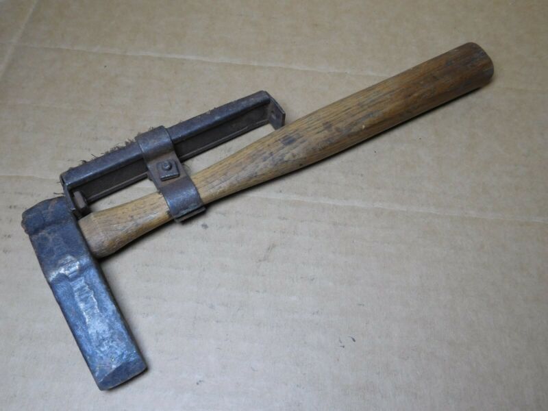 Vintage St. Pierre blacksmith welders chipping hammer with remains of wire brush