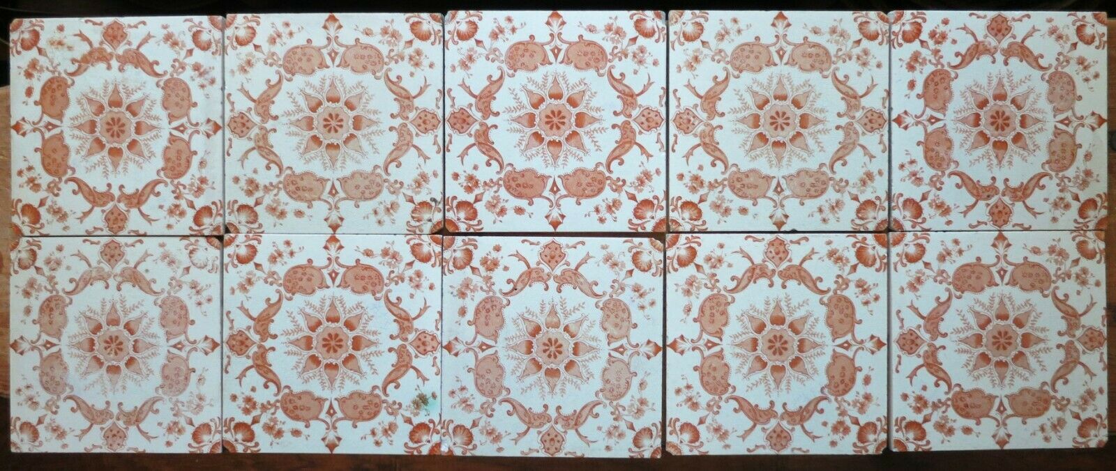 10 Identical Antique Art Nouveau Brown & Cream Color Tiles England
