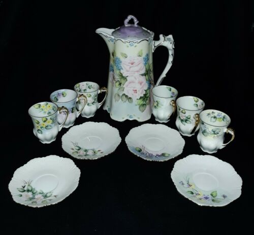 Antique Handpainted Tea Set English Garden Signed