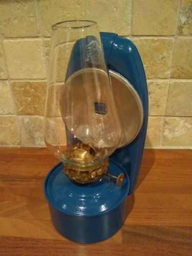 VINTAGE WALL MOUNTED OIL LAMP BLUE