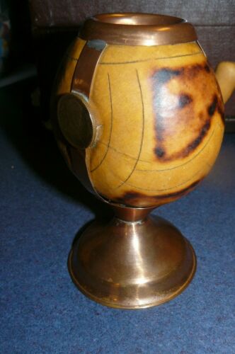 Title (ebay affiliate link): Chilean Mate Tea Coin Gourd Cup on Copper Stand Vintage