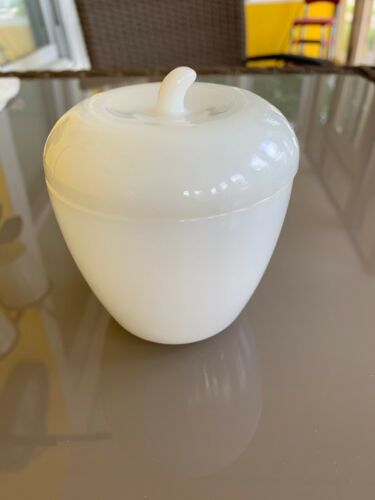 Vintage HAZEL ATLAS Milk Glass APPLE Lidded Jelly Jam Jar