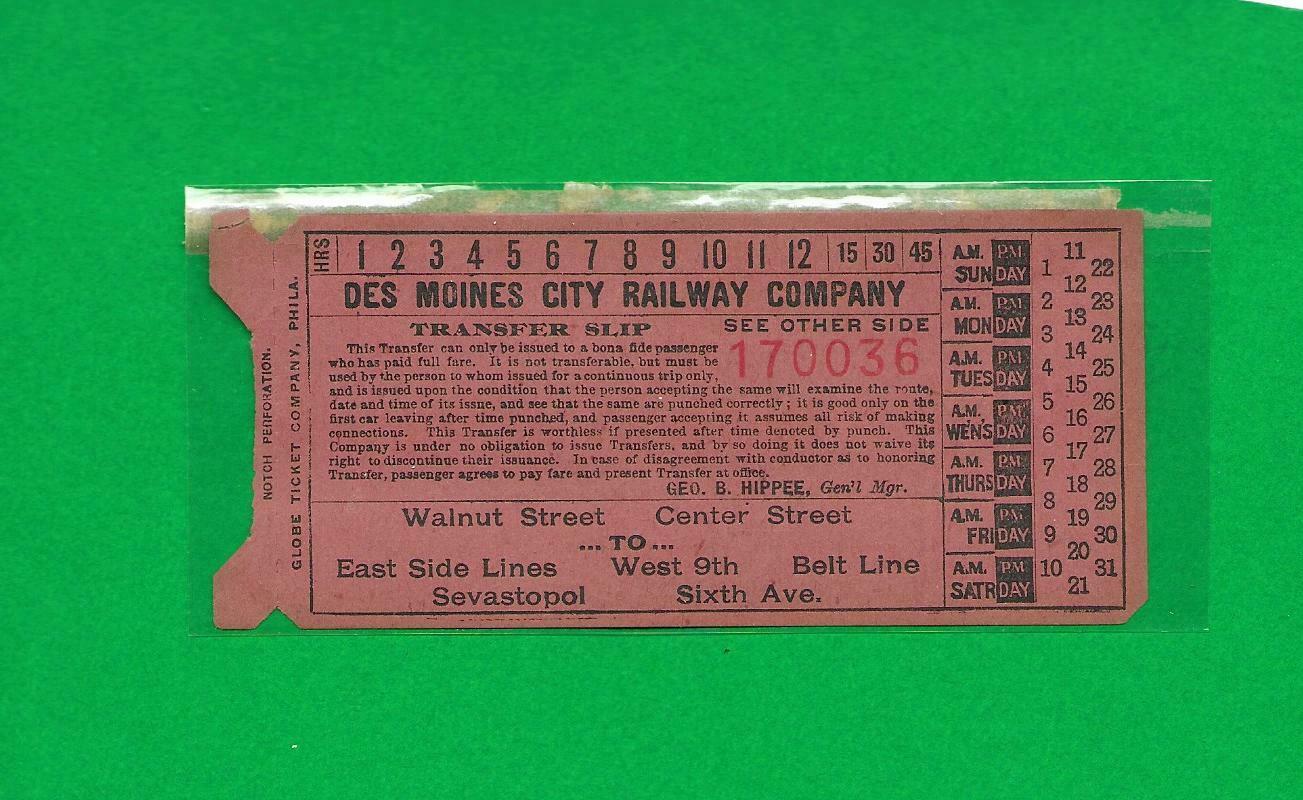 Title (ebay affiliate link): 1900''s De Moines City Railway Company Transfer Ticket