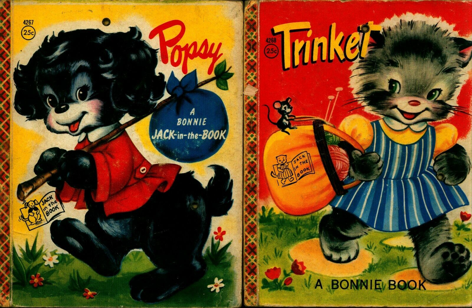 Title (ebay affiliate link): 2 BONNIE JACK-IN-THE-BOOK BOOKS: POPSY THE PUP & TRINKET THE KITTEN (1955)