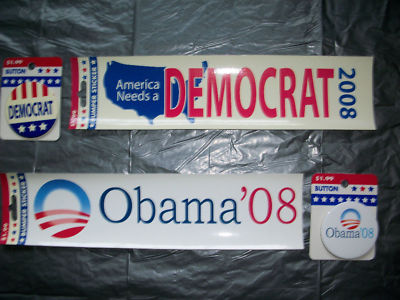 Obama campaign bumper stickers and pin-back buttons