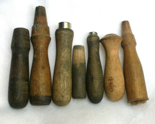 Title (ebay affiliate link): Vintage Lot of 7 Wood Handles For Chisels Files 1 Leather Cap 1 Oberg 3" to 6"