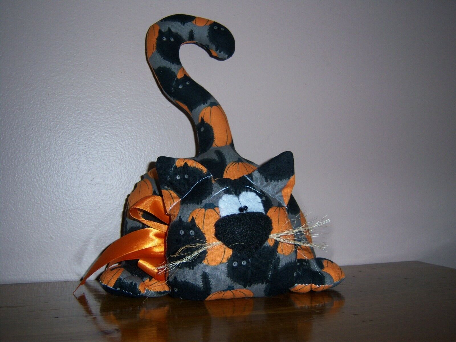 PRIMITIVE FOLK ART HALLOWEEN HC CAT SHELF SITTER ORNIE DOLL TUCK